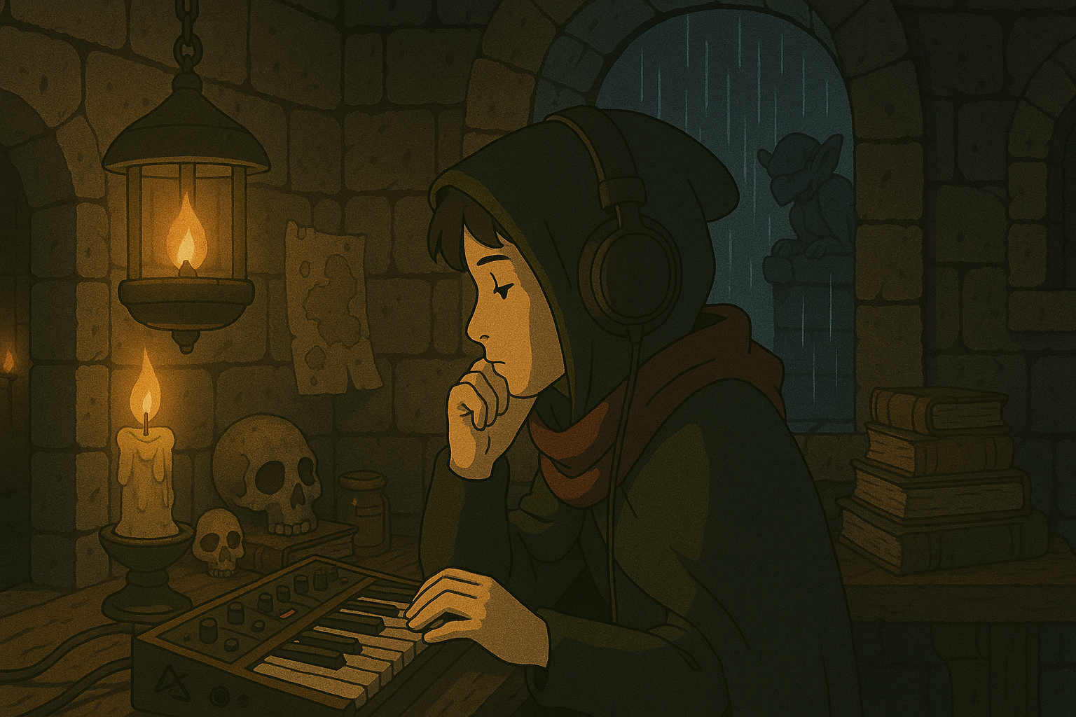 The big gap between recording sessions also meant we could make some interludes between the songs. We were inspired by the ‘Dungeon Synth’ genre (a playlist here for those keen to engage) and tried to write small compositions that eased the transition between songs. It was as simple as figuring out the key of one song, and then writing something that would modulate into the key of the next song. I mean, I say simple but I did find it hard and there was plenty of trial and error. It was also a real struggle to fit into the final recording, as the stuff I’d written and recorded at home had to be remixed to fit the album, but also the vibe for what we were going for. Think “lofi hip hop beats to study/relax to” but “lofi dungeon synth keyboards to be spooked out/transcend to a higher plane to.” I hear it is the next big thing.