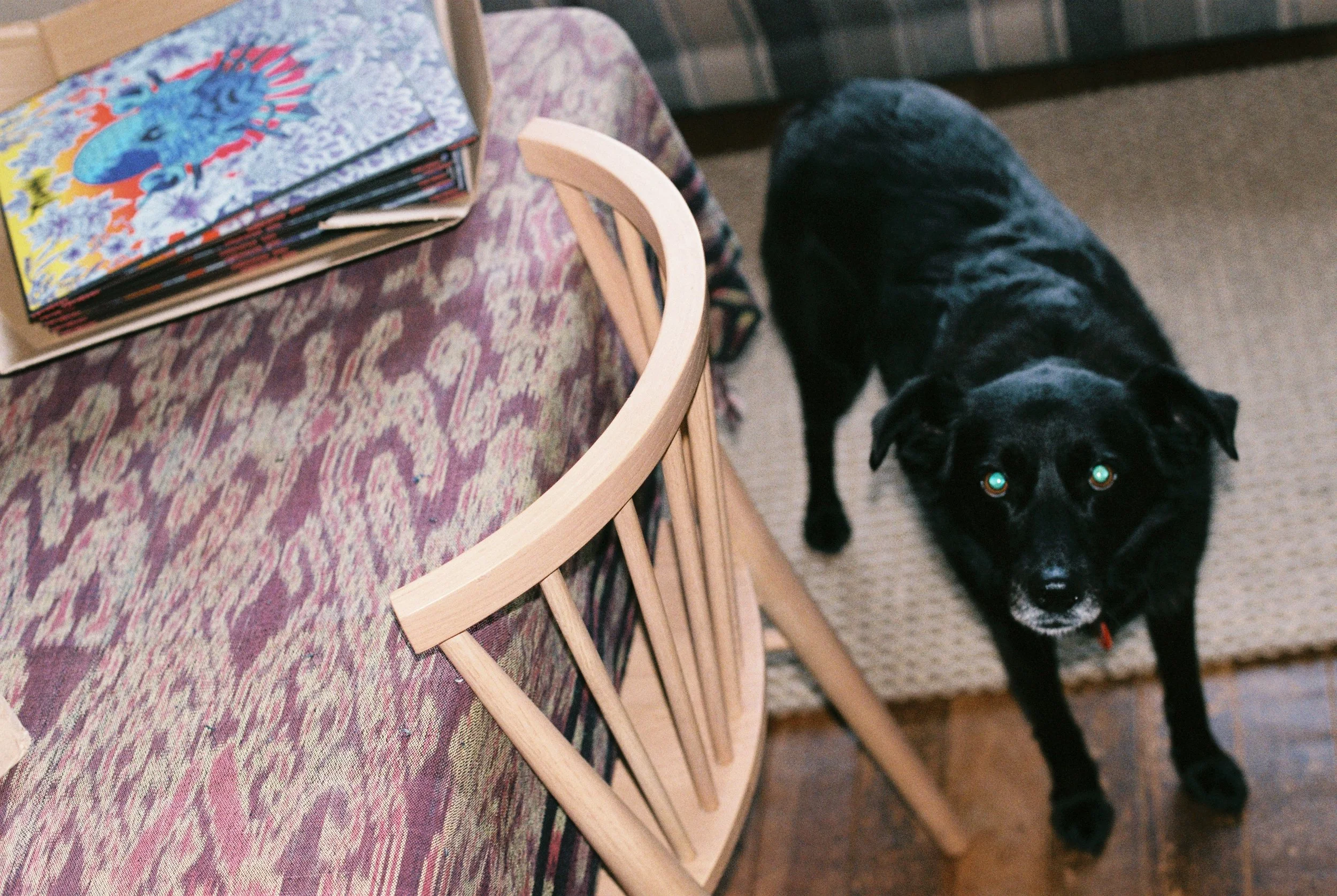 Often, if not every roll I’ve shot has a few bung frames where I’ve messed something up and it doesn’t come out well. But sometimes these mistakes can end up being weirdly great. Missed focus? Somehow it can work on film in a way that is intangible. Overexposed? What am I looking at? It’s part of the fun. Underexposed? Guess what, you get to experience more of that film grain that nerds online think is cool. But more than just technical issues, sometimes a throwaway ‘bad’ snap at the end of a roll to finish it off can hold some more meaning years later when you go through this stuff. Take this snap below: It’s my mum’s old dog Kiri (she’s still with us and is 17!) and a stack of the second TRIUMPHS album I was hand-numbering before trying to flog online. It’s a point in time in 2017 I’ll never have back but I love that it’s documented in this way. Kiri looks like an insane demon, my parents have a garish tablecloth on and this is a unique point of view that doesn’t exist at any other point in time. It is the beauty of being alive, spinning on a rock in space and just existing. Rock and roll.